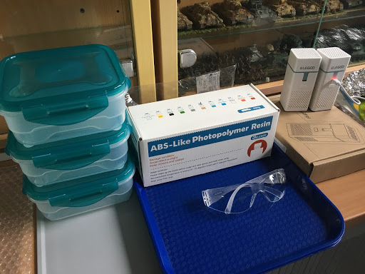 That's about everything. Oh, apart from a spray bottle, airtight food containers, safety glasses, lots of paper kitchen rolls and bin liners to throw all the resin contaminated crap into, a funnel and some coffee filters to filter resin from the vat back into the bottle.