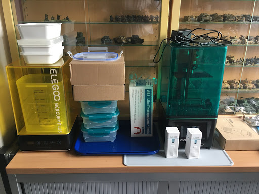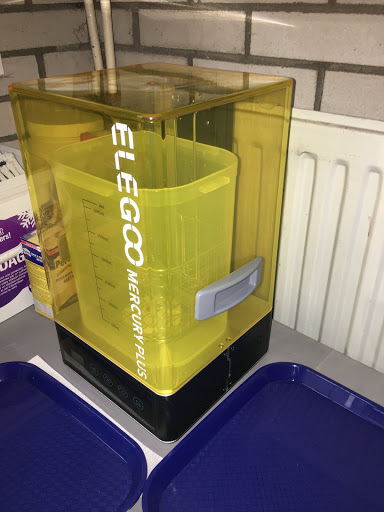 One of the big issues with resin printers is ... the resin. It's toxic, can stink and is difficult to clean up needing special precautions. So, I had to invest in a couple of bottles (5 litres) of IPA (99%) to clean the prints, a box of nitrile gloves to handle the resin, prints and tools and some masks to prevent breathing in the resin fumes. All while these items have become bloody expensive due to the corona pandemic.